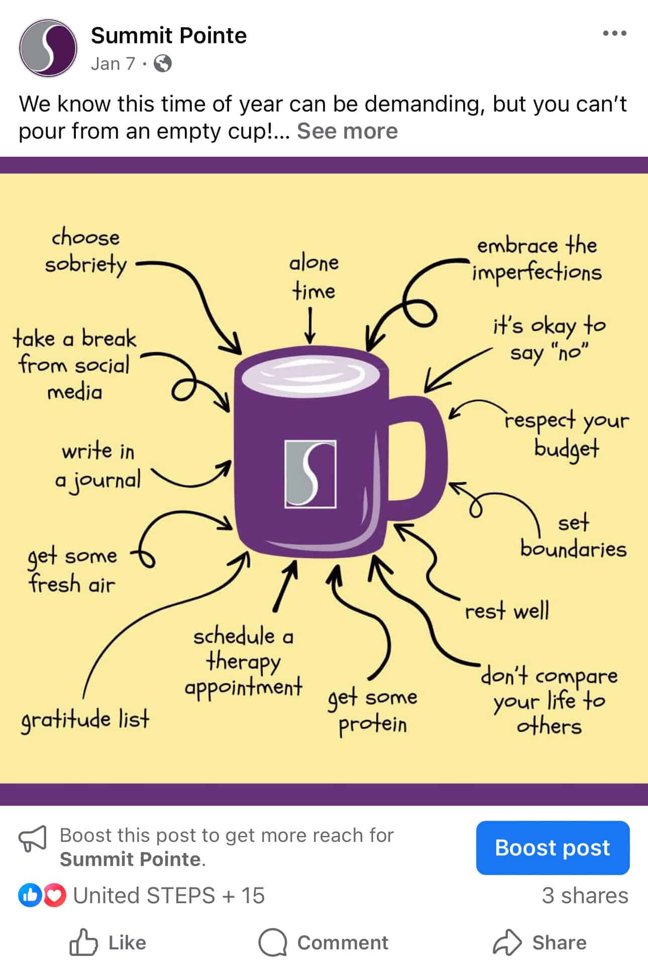BluFish provides Summit Pointe with full-service social media management under an ongoing retainer, including photography, copywriting, community management, scheduling, strategy, and coordination. Since partnering with us, Summit Pointe has seen significant increases in engagement and reach across their social media platforms.